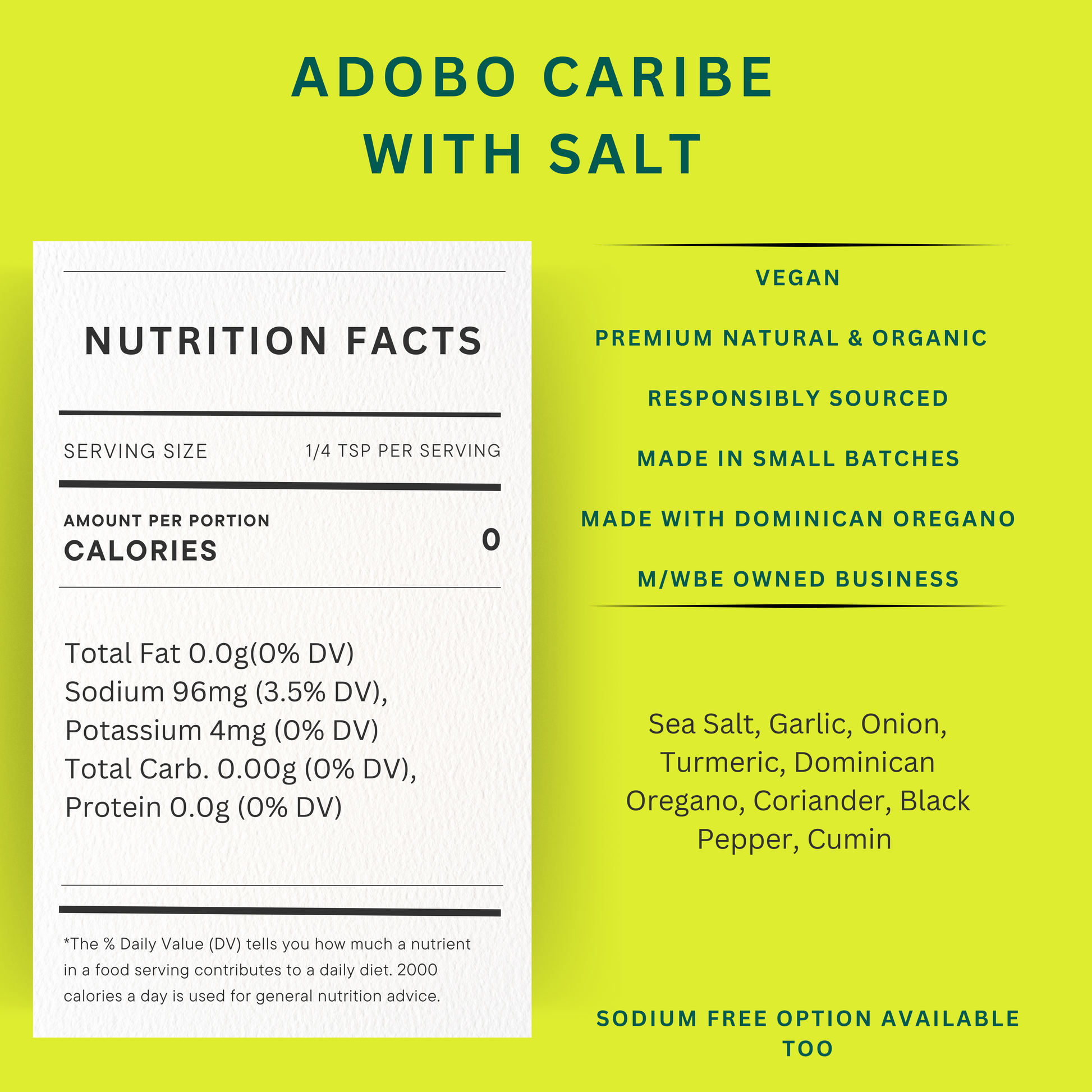 She's a legendary blend made of all the Latin(x) adobo seasoning essentials, but what makes her really stand out is Un Chin de sabor Dominicano ( Dominican flavor). Fashioned after the bright colors of island life, Adobo Caribe, has a not so secret natural spice - Dominican Oregano straight from La Isla de Hispaniola (also found in neighboring islands) and a personal favorite in my Pollo Guisado (stewed chicken).